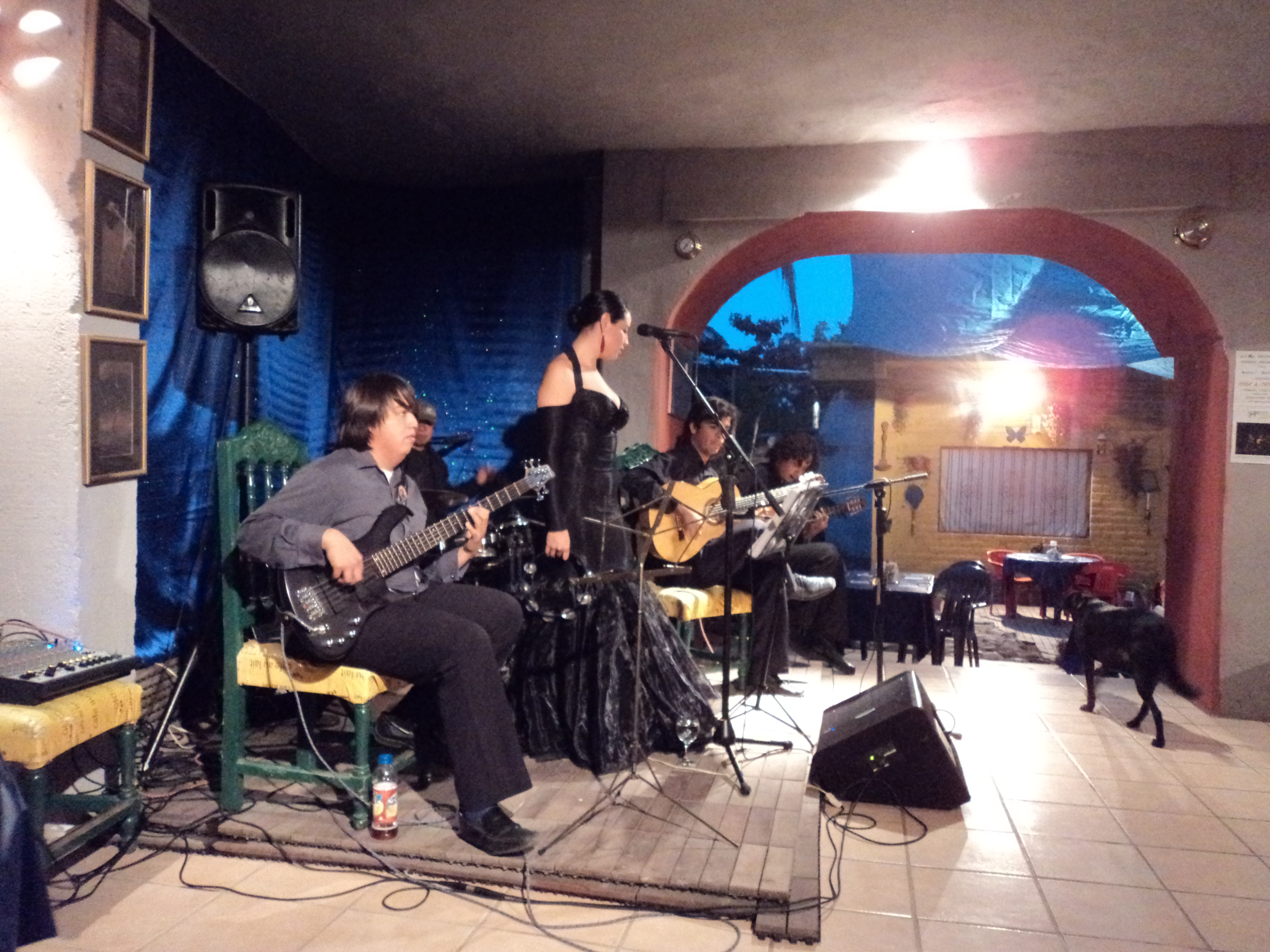 Community of Musical Friends – Geo and Latcho & Andrea and Chris. Karen’s bee popping in the background. Below, Tuesday’s at Brittania, my fave night in town… Thanks Mandy, Mike, Nick, et al! And below that Tatawari and Perla play at Yaya’s, so great!