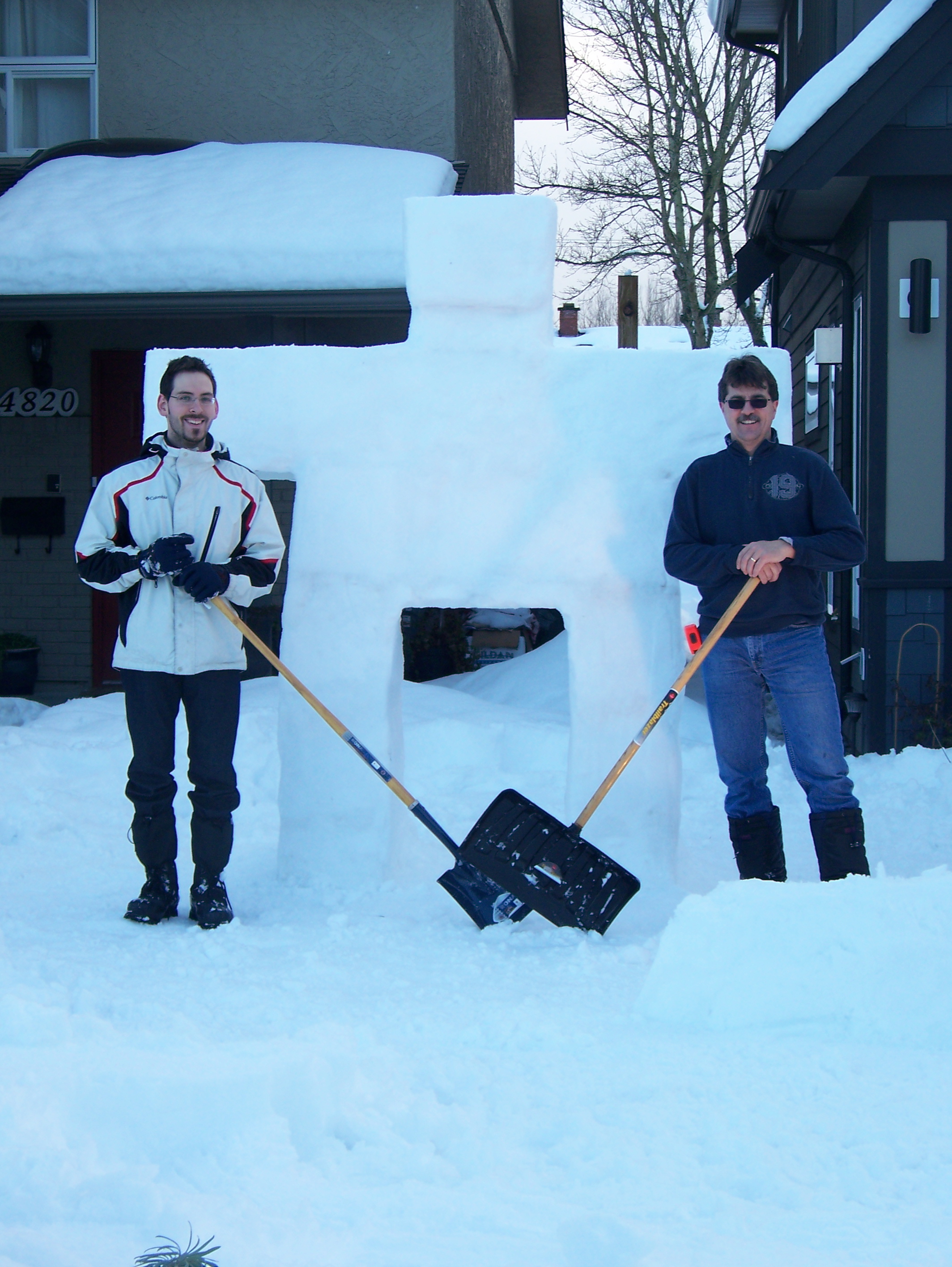 Fun work, Chris and our son-in-law, Manaen, building an Inukchuk on Christmas day.