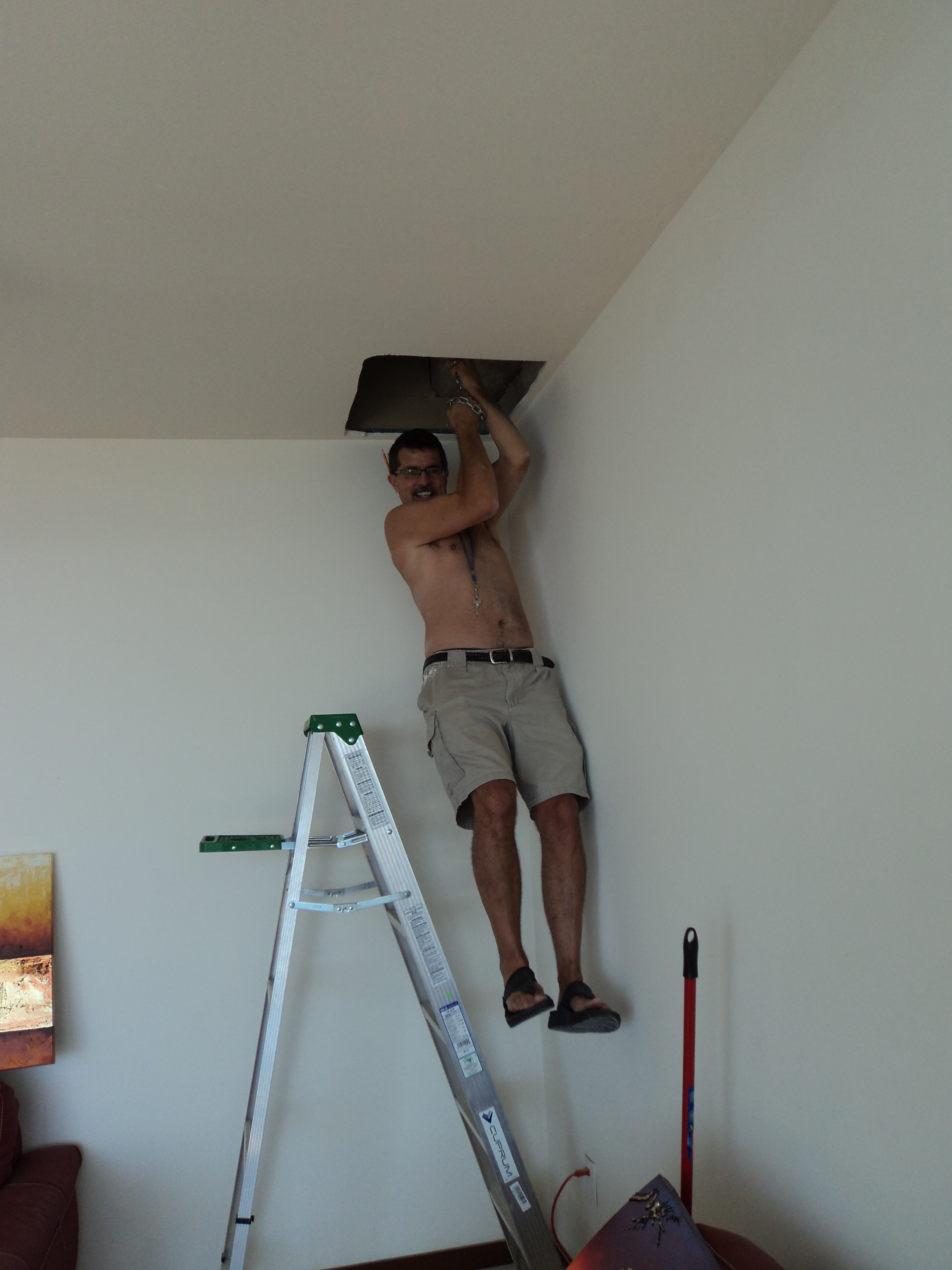 Checking that the chandelier we bought for a client would hold. Again in Mexico. Oh ya!