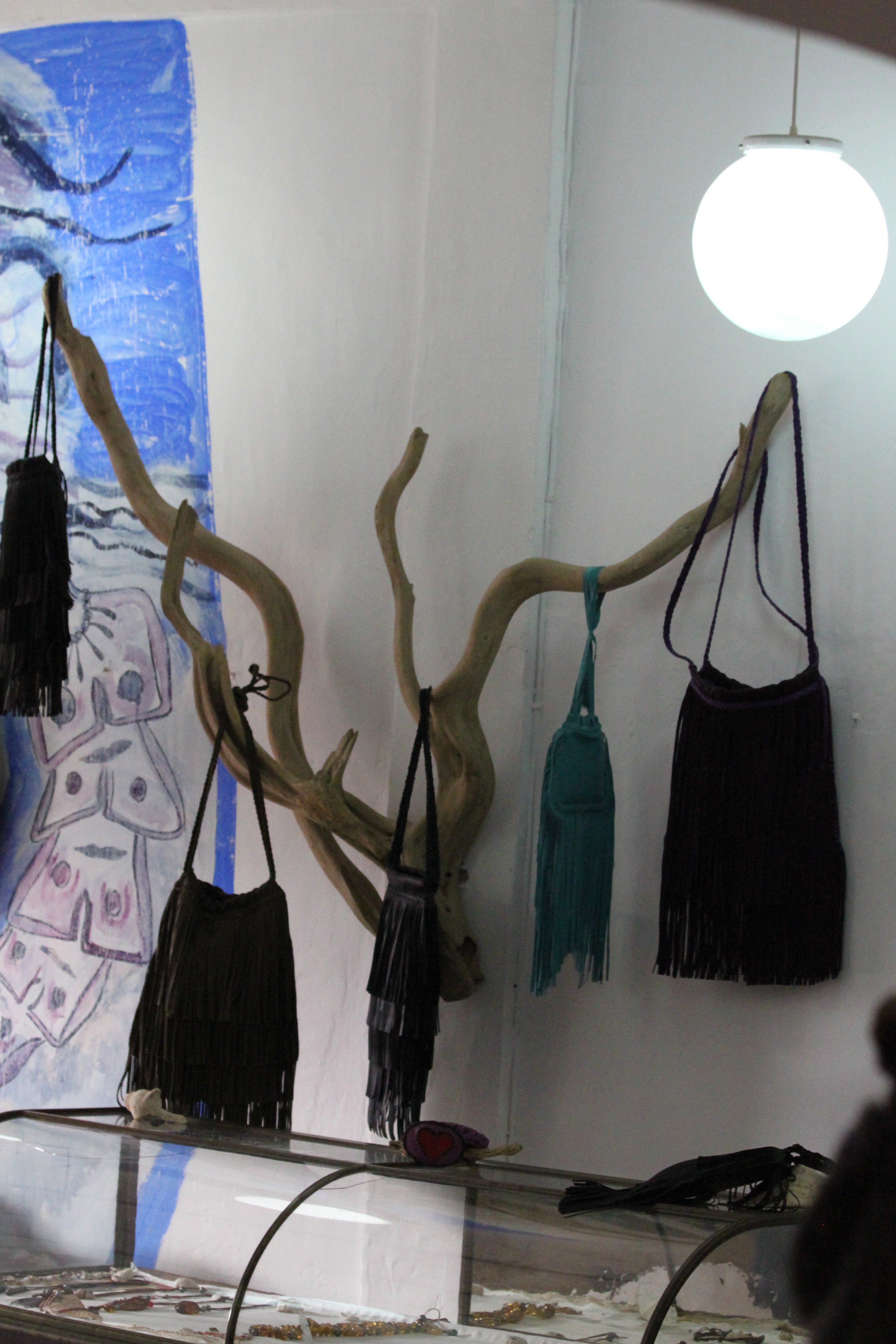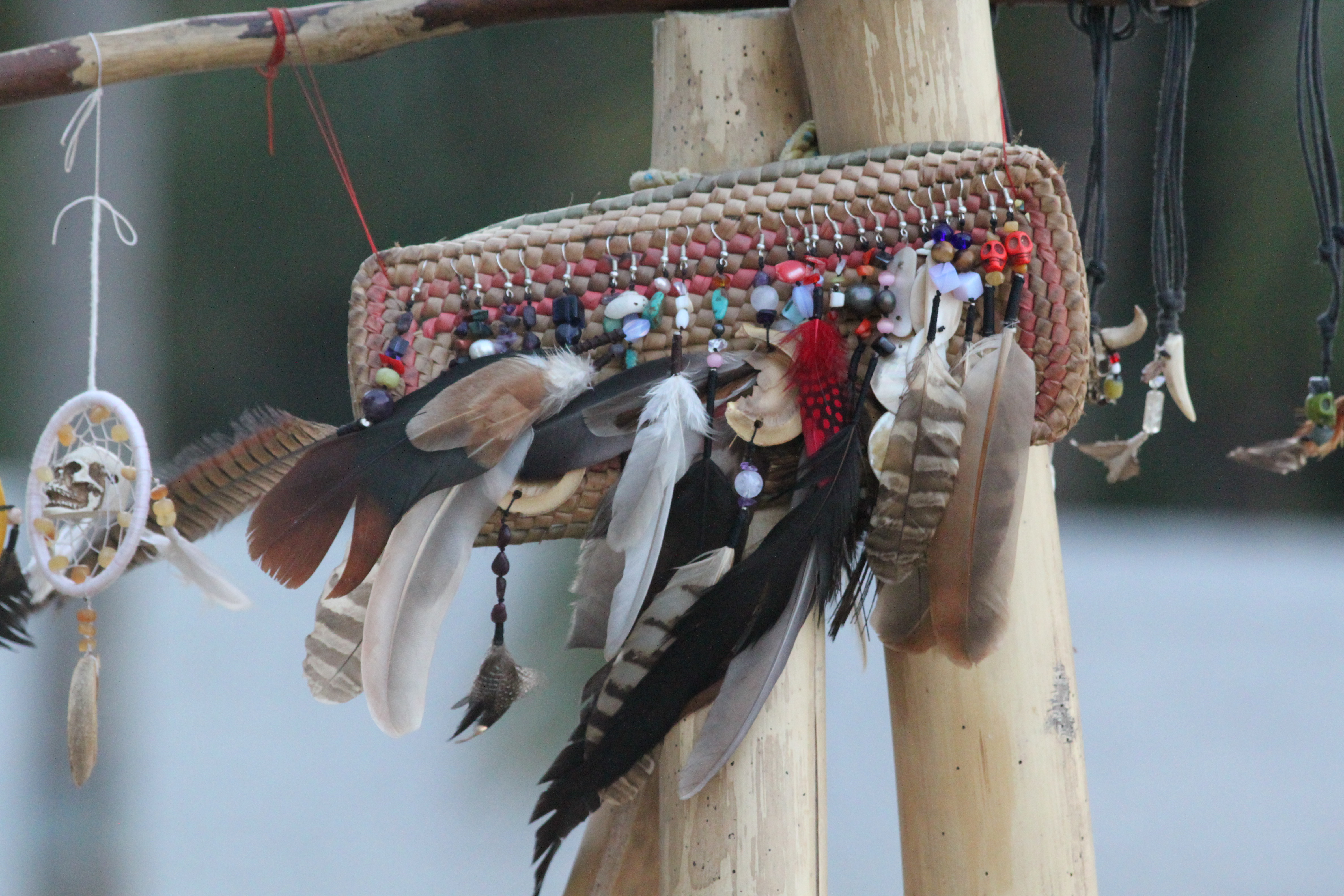 Feather earrings made locally and sold on the beach.